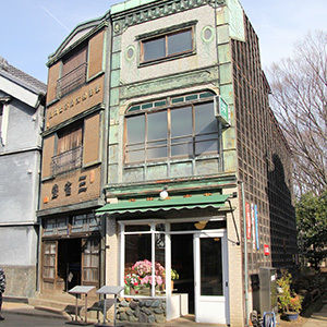 この頃は見かけなくなりましたが、正面は洋風で裏側が和風建築という商店の建物がありましたね。「美の壺」の特集は商店建築でした。全体が洋風建築なのかしらと思って裏に回ると普通の日本家屋なのです。商店の表を飾り立てるというのはなんだか見栄をはっているのかしらと思わず考えますが、商店建築というのは関東大震災以後、下町の商店街でいっきに作られたそうです。建築の知識などない絵描きにデザインを頼んだりしたそうです。絵描きたちは、自由な発想でデザインしたそうです。ギリシャ神殿風とか、斬新なデザインとかみたことがあります。表だけということで絵描きや職人さんたちは勝手気ままにやらせてもらったのでしょうね。私がよく見た看板建築と言えば、銅板を使ったものが記憶に残っています。銅板は、耐久性があり緑青が表面を覆うと劣化を防いでくれるそうです。緑青をふいた建物はなかなかノスタルジーを感じます。この時代の職人や、デザイナーたちは思う存分キャンバスに見立てて飾り立てたんでしょうね。下町全体があらゆる商店建築、つまり看板建築で覆われていたのですから壮観だったのではないでしょうか。近年建てなおされてその看板建築が少なくなってしまったことが寂しい気もしますね。その技術たるや凄いものだったのでしょう。今その頃の技術を継承している職人さんはどれくらいいるのでしょう。そのまま正面を切り取ってキャンバスのように残すことはできなかったのかしら・・・。今年最後のアラカンアートでした。それでは、皆様良いお年を!