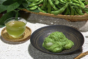 枝豆を丁寧にすりこ木で潰し、それをすって甘く味付けする。幼い頃の私には、とても不思議なお菓子だった。枝豆は、ビールのおつまみ。味は塩味という先入観。それがみるみるうちに美しい黄緑色のあんに。鮮やかなずんだはお餅に絡めると、たちまち素朴で優しいお菓子に大変身。何個でも食べられてしまう。暑い夏にこの爽やかなずんだの色彩は暑さを和らげる演出をしてくれる。