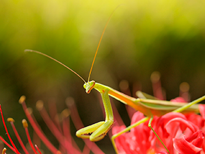 台風が去った朝、洗濯物を干そうと庭に出ると、若草色のものが物干し台に張り付いている。何かと思い目を凝らして見ると、かまきりではないか。昨日の嵐にも耐え、生き抜いたようだ。秋になるとよくかまきりは見かけるが、このかまきりは、何故か動きが鈍かった。手と足をゆっくり動かしてはいたが、飛ぶ元気はなかった。次の日、ふとガラス窓をみると昨日のかまきりが張り付いているではないか。ゆっくり頭、手、足を動かしてはいた。その姿に何故か感動した。草の中に戻してあげるのが一番だと思い、そっと摘んで逃してあげた。この日は一日中かまきりのことが気になった。生き延びてくれと心のなかで叫んだ。一日経って草むらを覗いてみた。あ~あ、かまきりは息絶えていた。生きようと必死にもがいていたかまきり。スコップで穴を掘り埋めてあげた。あの若草色の姿が目に焼き付いて離れない。こんな小さな毎日繰り返されている出来事がみょうに心に響いた。生の儚さを感じてしまう数日だった。